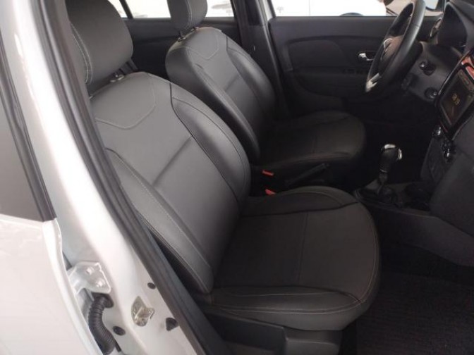 Ar-condicionado automático, direção eletro-hidráulica, bancos em couro, volante multifuncional com comandos do piloto automático e limitador de velocidade.